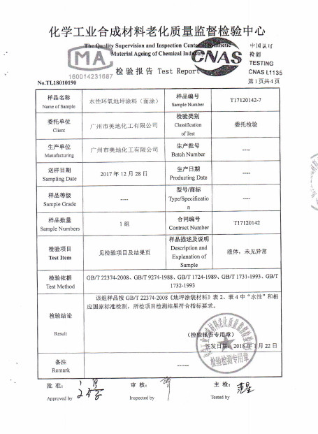 美地美水性地坪漆:以水為溶解物的環(huán)氧樹(shù)脂地坪材料,不含甲苯、二甲苯之類的揮發(fā)性有機(jī)溶劑,不會(huì)造成環(huán)境污染。