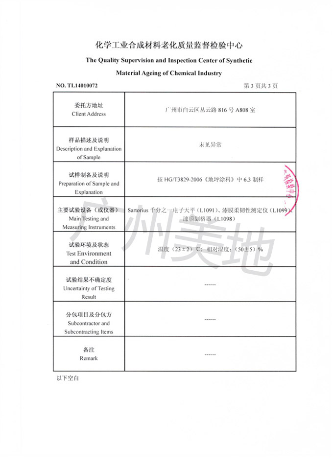 環氧自流平地坪漆檢驗證書